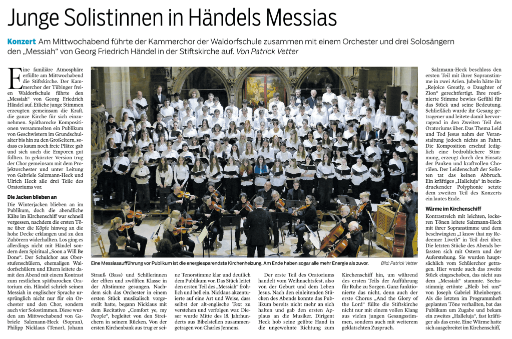 Kammerchor der Waldorfschule trat in der Tübinger Stiftskirche auf