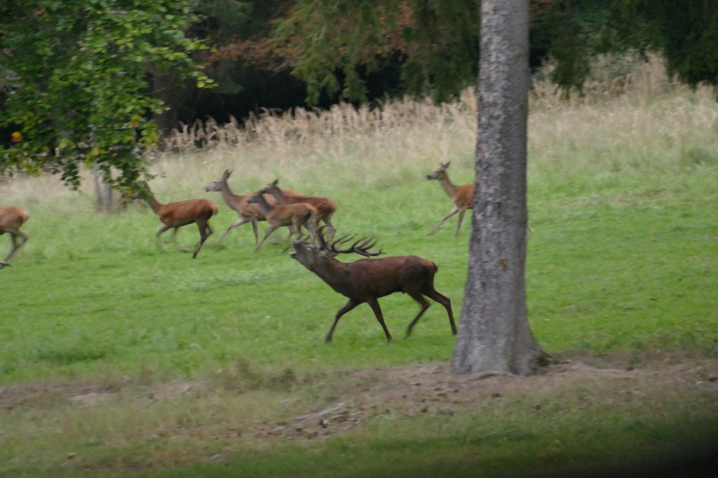 Reichen imponierende Rufe nicht aus, kommt es auch immer wieder zu Kämpfen. Laut krachen dann die Geweihe, die Stangen, der Hirsche zusammen. Hell dringt das Geräusch dann zwischen den Stämmen des Schönbuch hindurch.